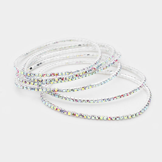 6 Pieces Crystal AB Stackable Stretch Bikini Competition Bracelet