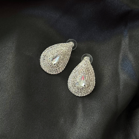 Teardrop Stone Accented Rhinestone Trimmed Stud Bikini Competition Earrings