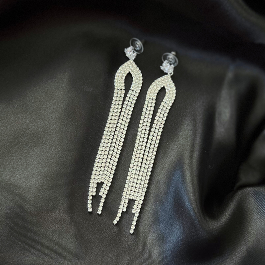 CLIP ON Rhinestone Pave Tassel Competition Earrings