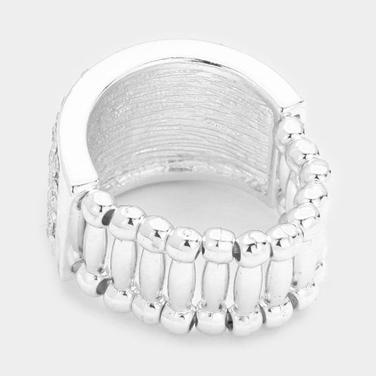 Crystal Rhinestone Pave Stretch Bikini Competition Ring