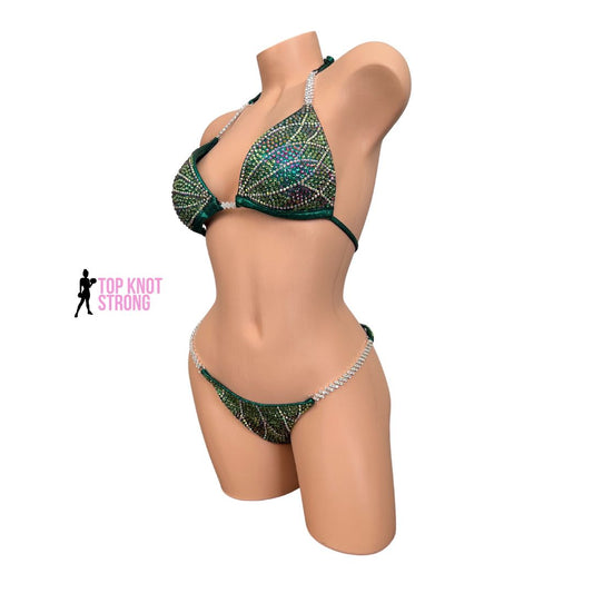 Emerald Green Ombre Crystal Bikini Competition Suit