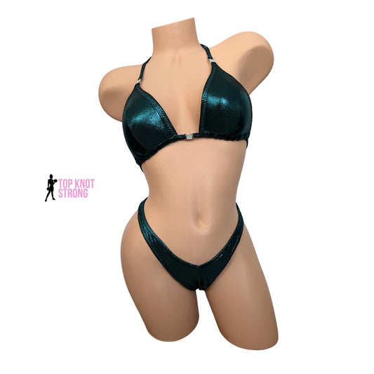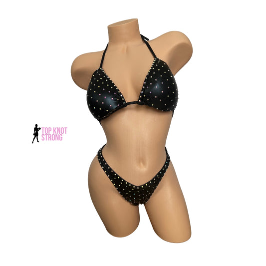 Wet Black Figure Physique Posing Practice Suit with Crystals