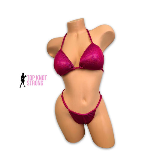 RTS: Sparkling Merlot Burgundy Red Crystal Bikini Competition Suit