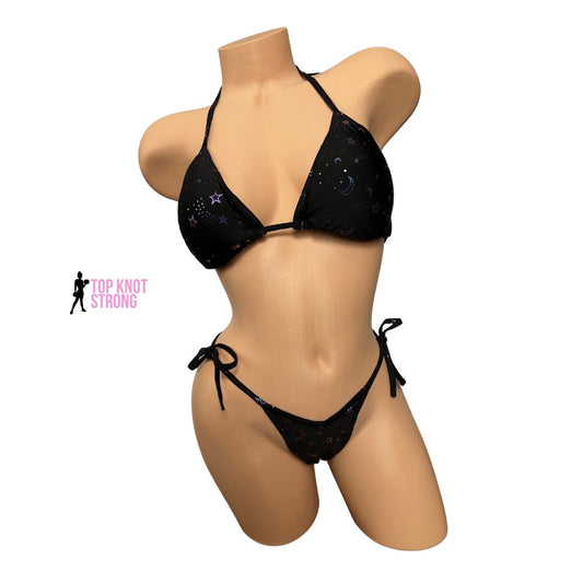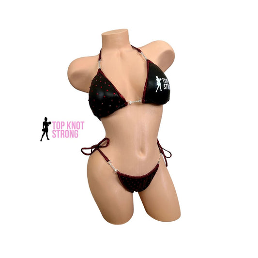 Team Top Knot Strong Red and Black Bikini Posing Practice Suit