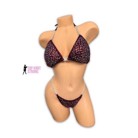 RTS: Sparkling Merlot Burgundy Red Crystal Bikini Competition Suit