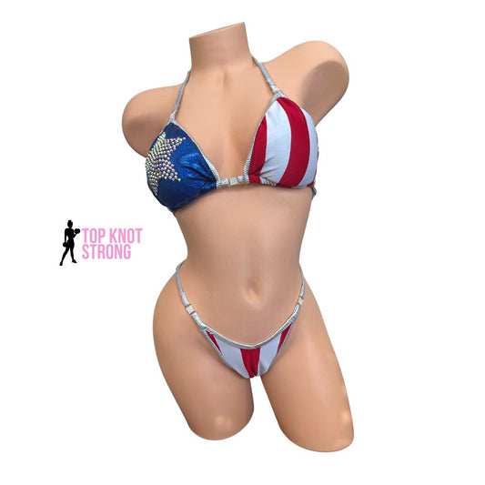 RTS: Red White and Blue American Figure Physique Posing Practice Suit | C cup | Extra Small Pro