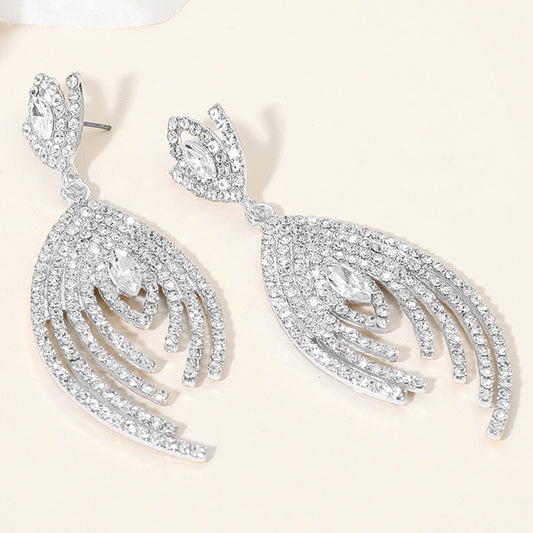 Marquise Stone Pointed Rhinestone Peacock Dangle Bikini Competition Earrings