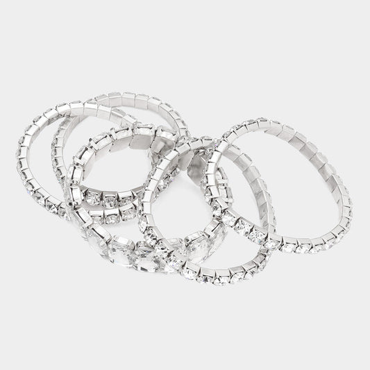 5 Pieces - Emerald Cut Round Stone Stretch Bikini Competition Bracelets