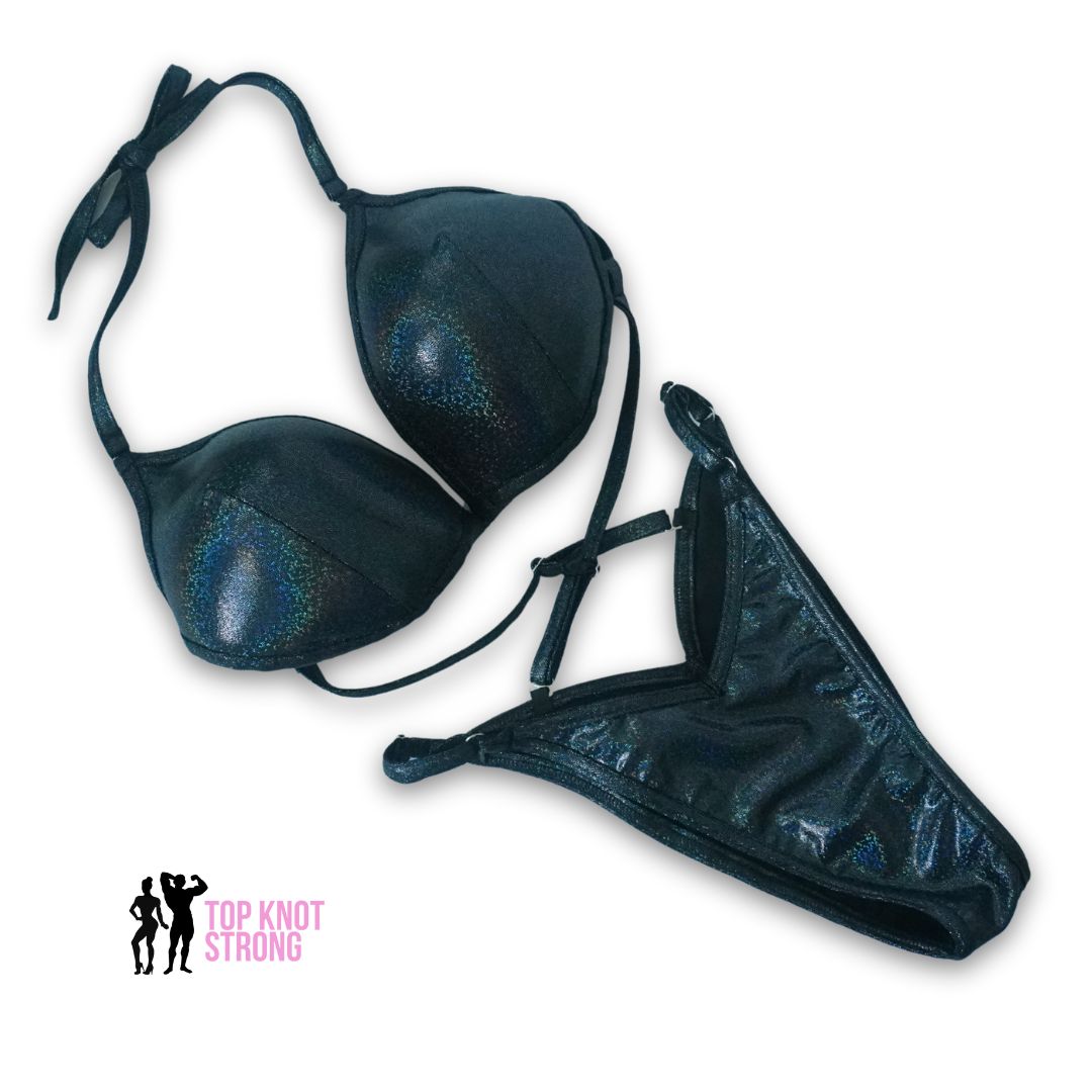 Stay ready for show day with this Black Holo Figure Posing Practice Suit. Guaranteed to fit perfectly with size options provided, this suit is designed to help you practice your posing routine to perfection. The best suit to make sure you look confident and prepared.