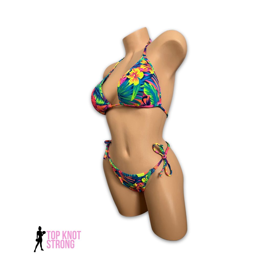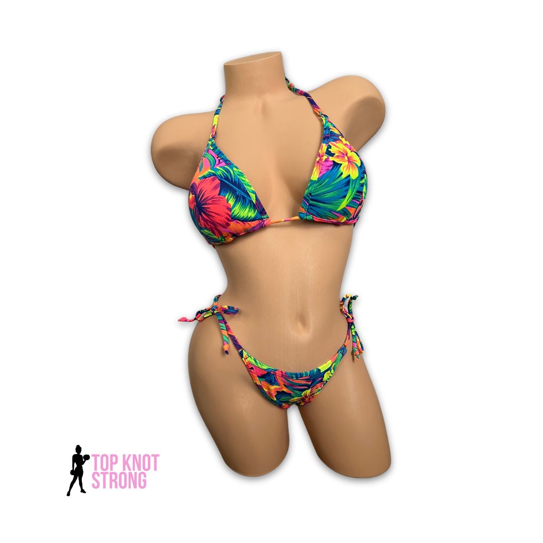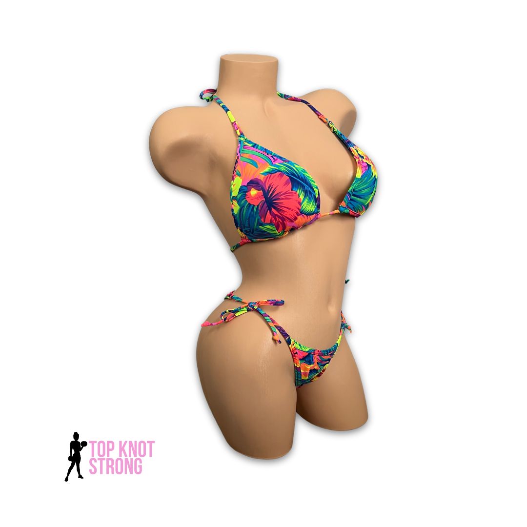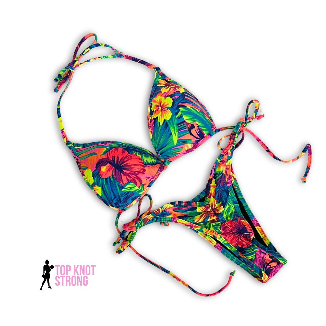 Stay ready for show day with this Tropical Neon Bikini Posing Practice Suit. Guaranteed to fit perfectly with size options provided, this suit is designed to help you practice your posing routine to perfection. The best suit to make sure you look confident and prepared.