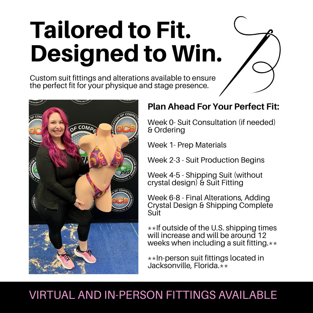 Crafted with attention-to-detail, our competition suits are designed to fit you perfectly. From fabric to pattern, choose the custom details that will allow you to show off your best assets. With precise body measurements, you can create a suit that will ensure you stand out like never before. Put on this amazing suit and you'll be ready to take your place on the stage with confidence.